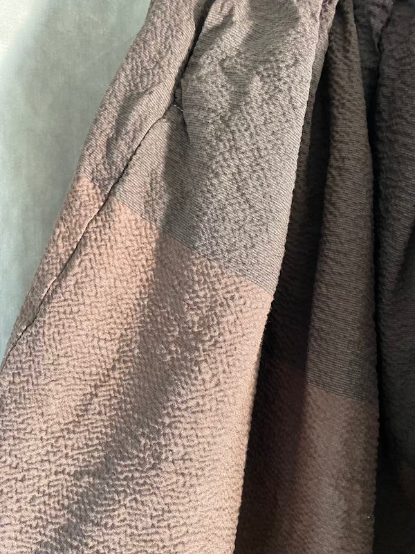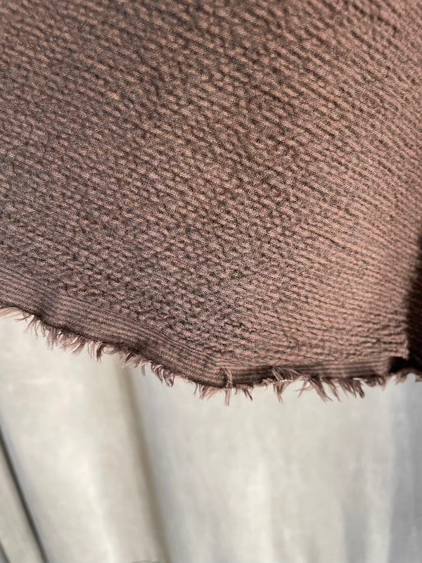 100% premium cotton ,seersucker,craftsman,natural dye,cioccolate color,upcycling of premium fabric, limited edition,artisanal, no plastic, no polyester made in italy